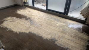 施工後のコメント:下地がめくれ上がるので、剥がし凹凸を無くし上貼りしました。